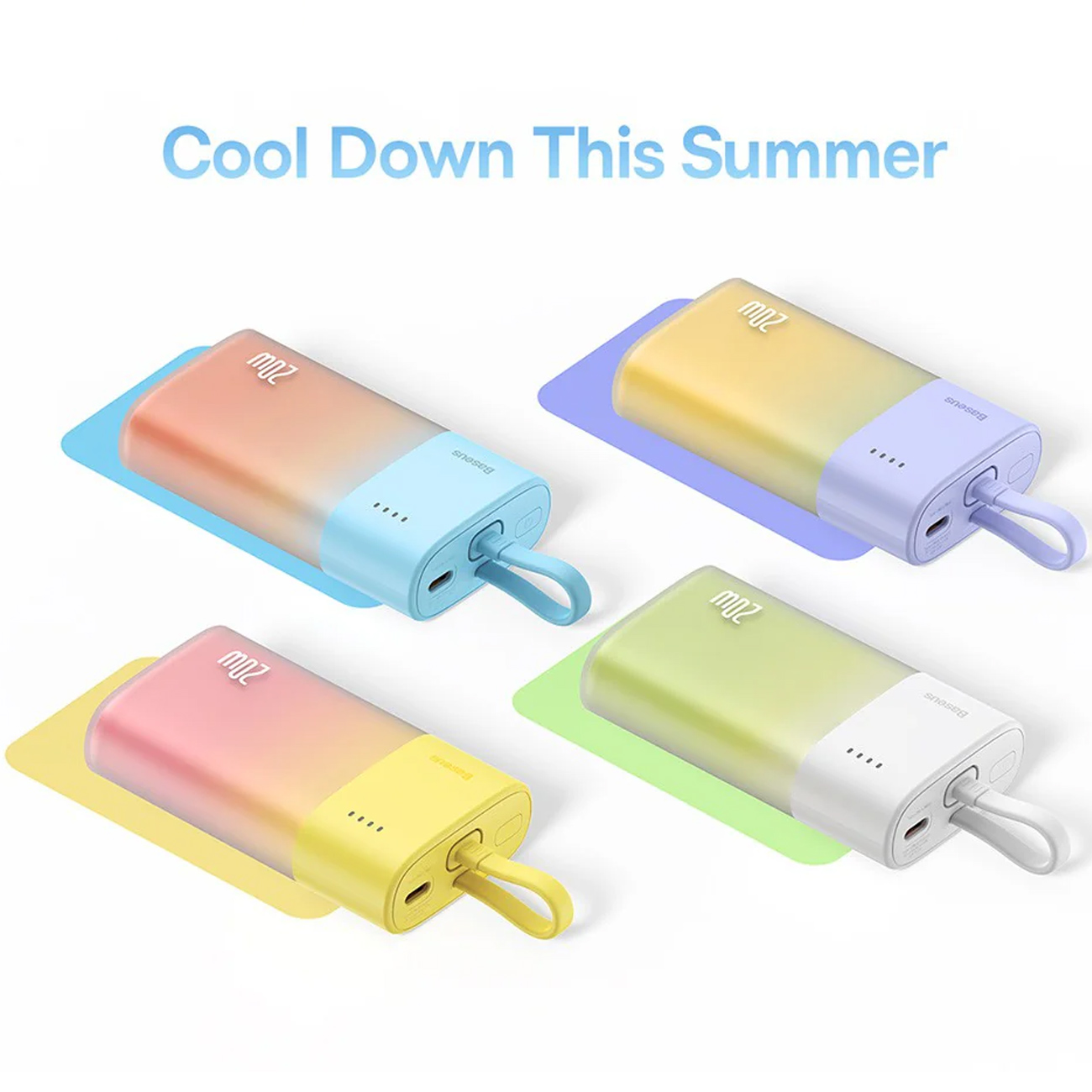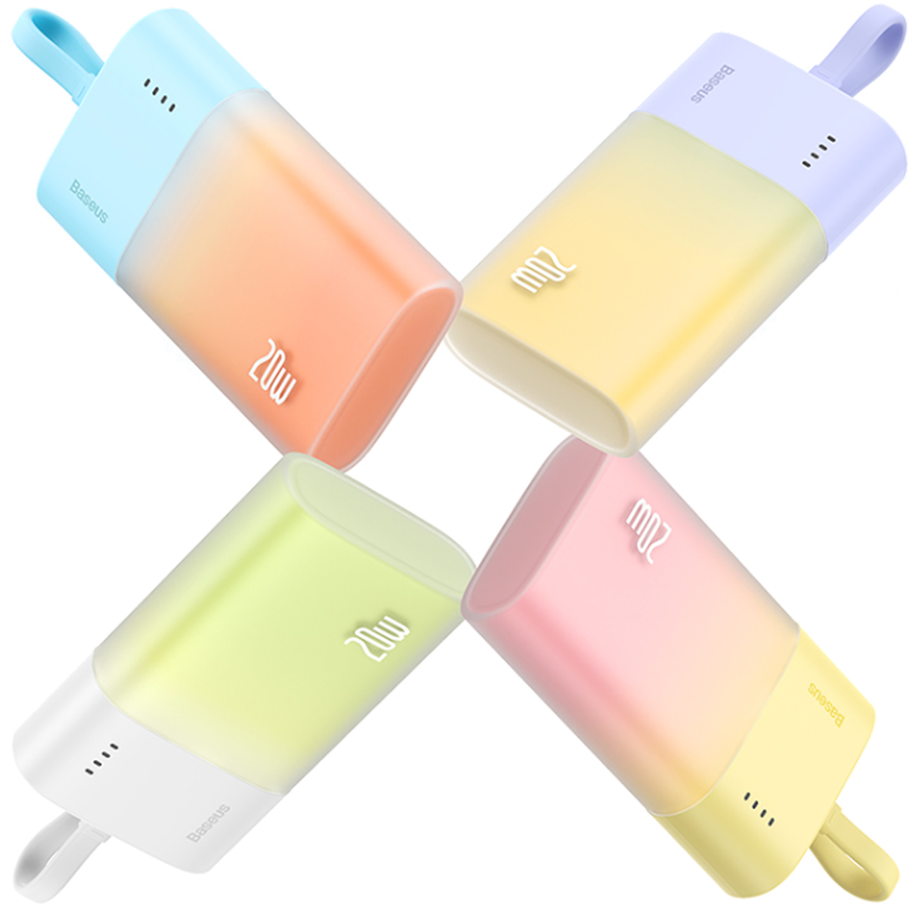 | طراحی بدنه | بدنه نیمهشفاف با ترکیب رنگهای زنده و شکل الهامگرفتهشده از بستنی؛ چهار نشانگر LED برای نمایش وضعیت شارژ |