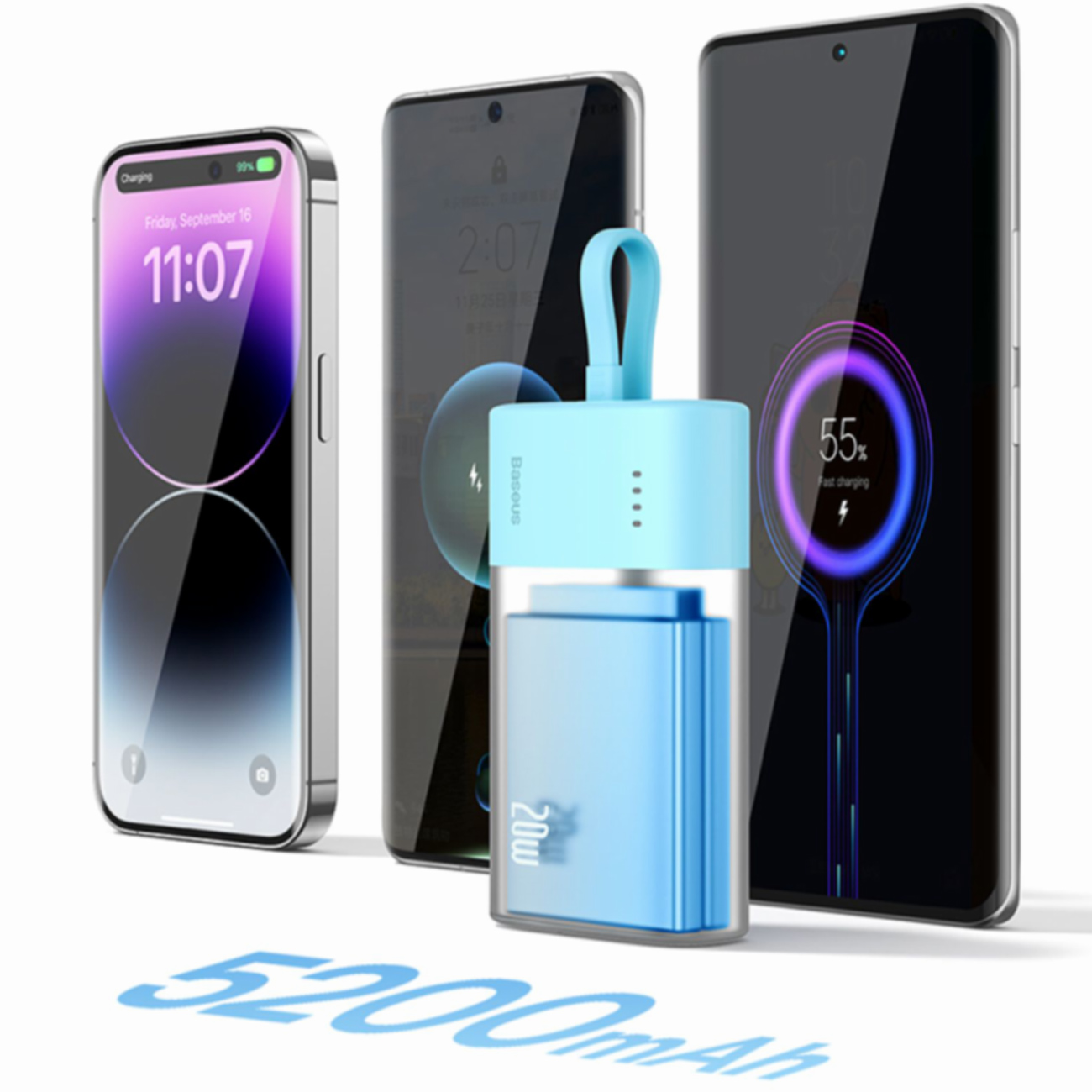 پاوربانک 5200 تایپ سی با کابل لایتنینگ 20 وات بیسوس Baseus PPKDC05I P10055601513-00