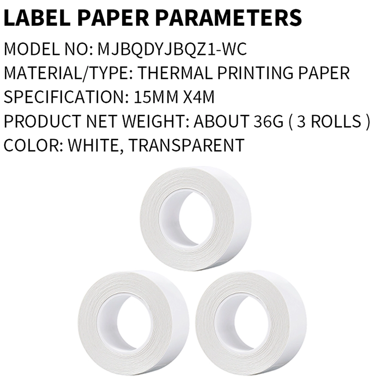 | ترکیب بسته | 2 رول سفید + 1 رول شفاف |