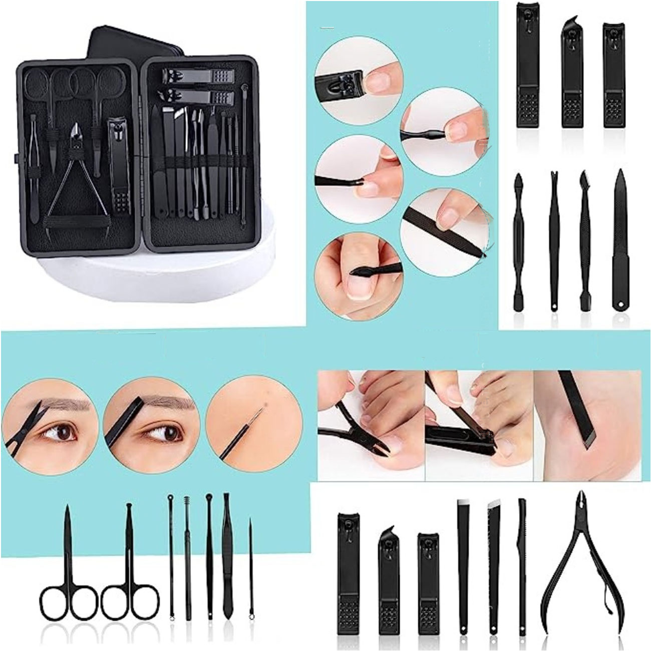 ست مانیکو و پدیکور ناخن 18 عددی گرین GNMTRVL18BK