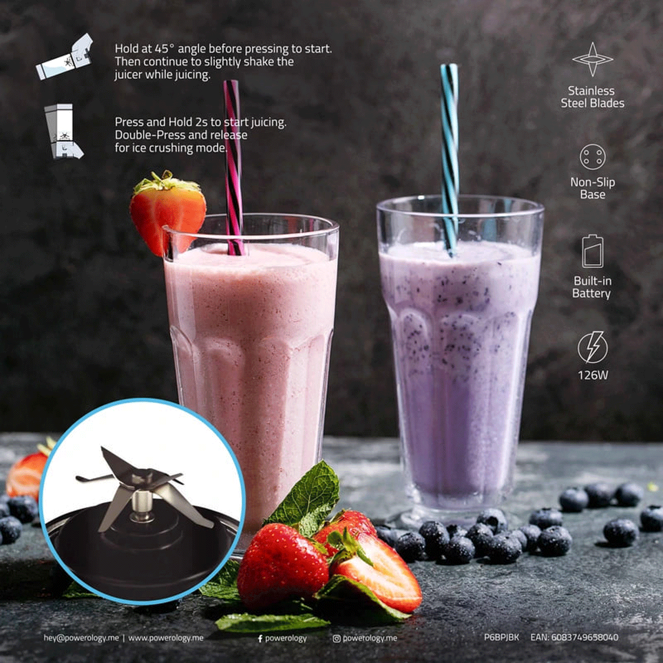 Powerology 6-Blade Portable Juicer 450mL 126W PN6BPJBK
