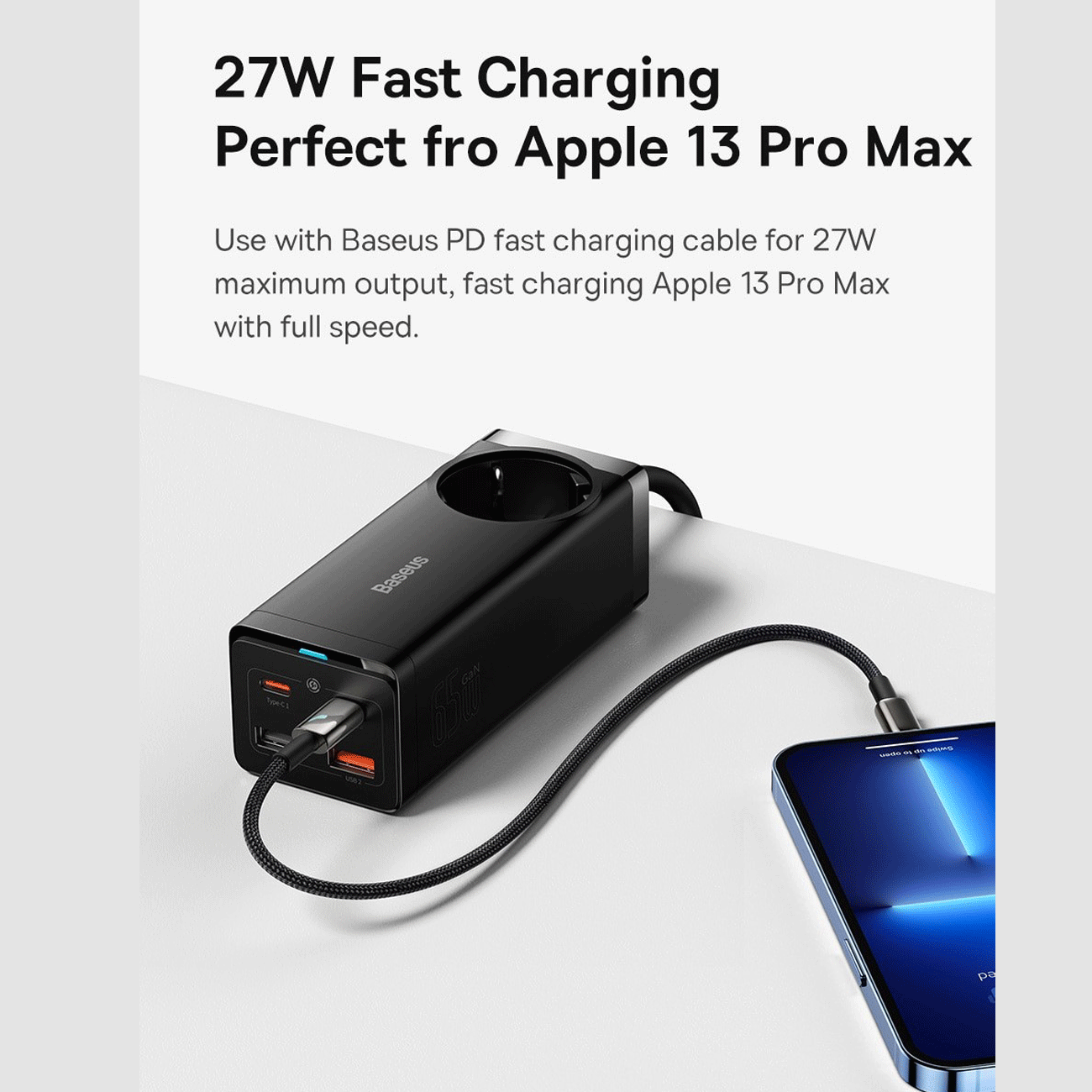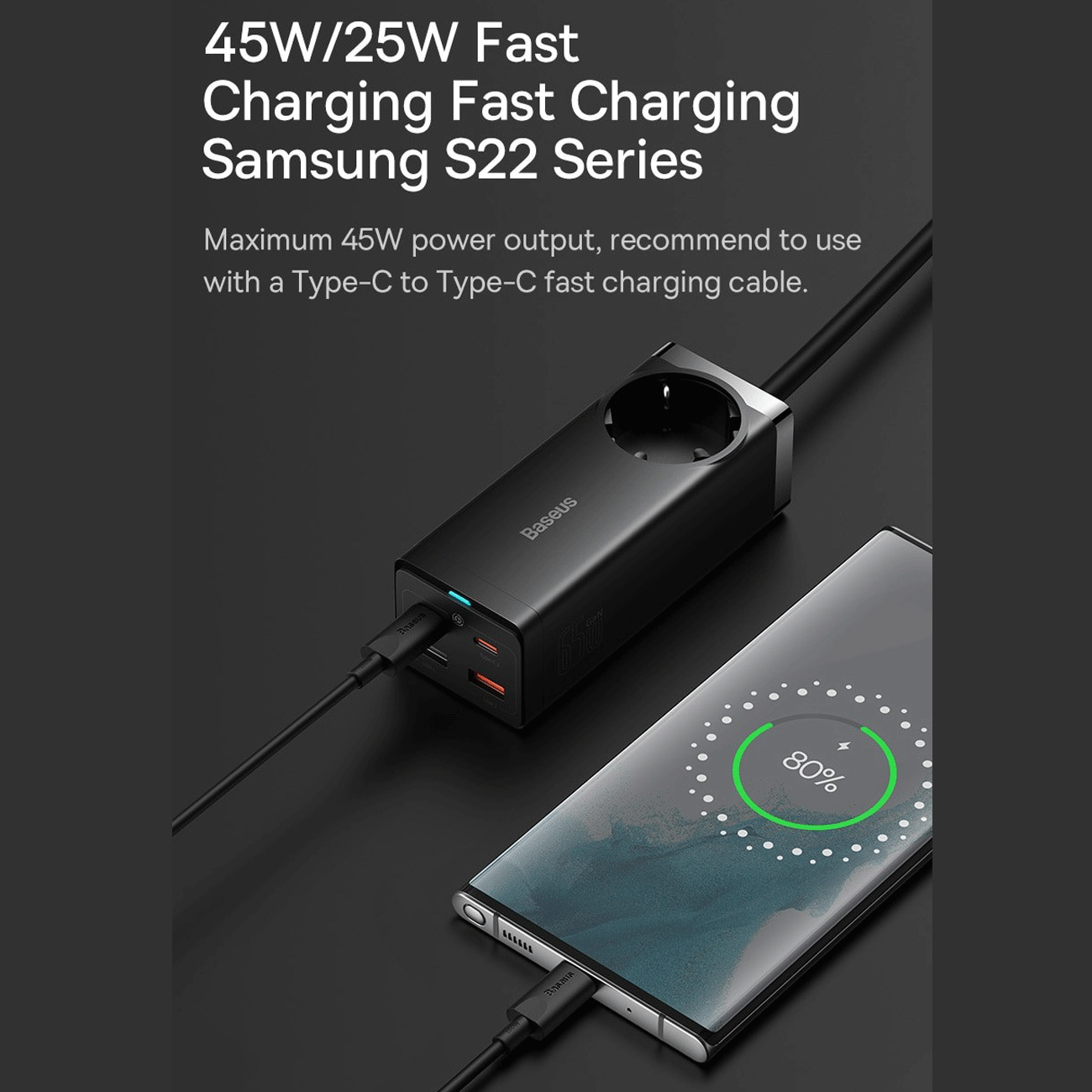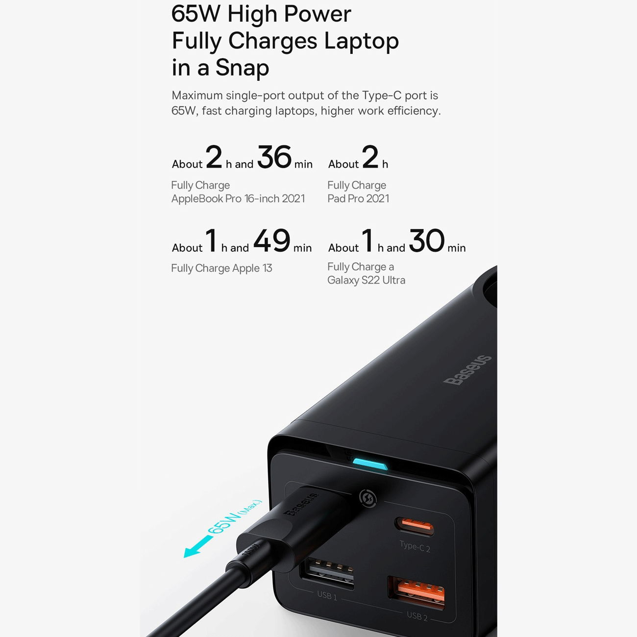 Baseus extension cord socket with 65W 4-port power adapter CCGAN65-1ACE BS-PSZM000901