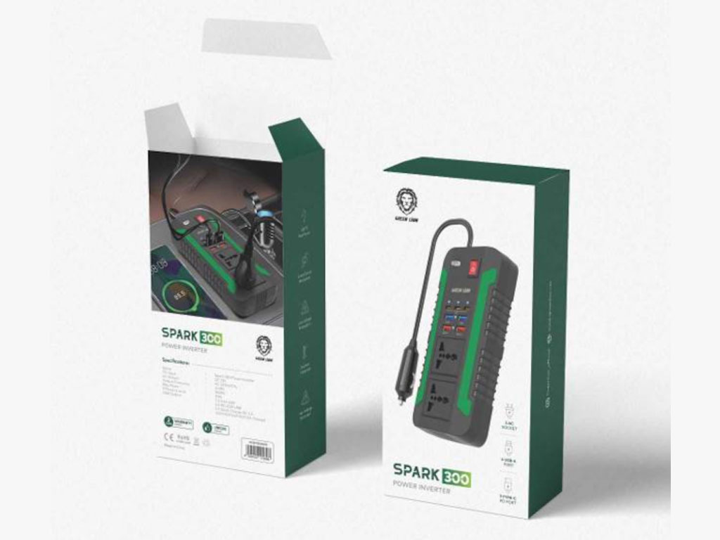 اینورتر و شارژر فندکی فست شارژ ماشین دو سوکت 300 وات گرین GNSPI300WAT