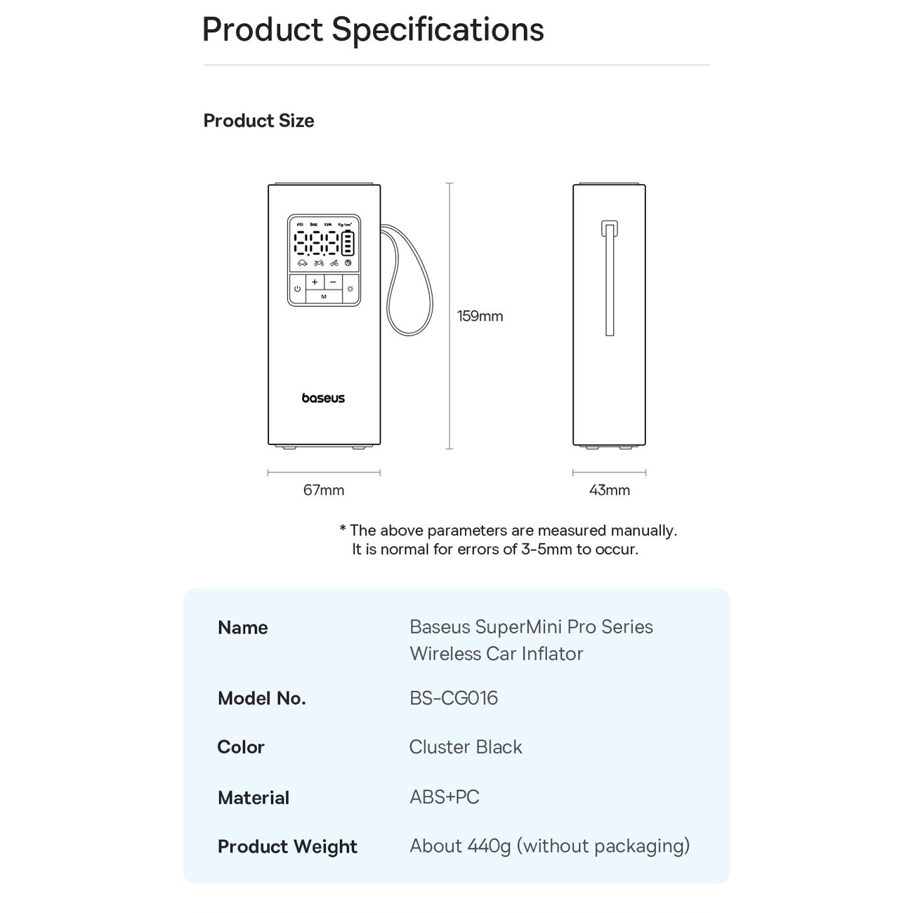 Baseus Super Mini Pro Series BS-CG016 Wireless Car Inflato 4000mAh C11159300111-00