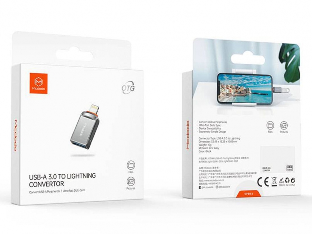 | مشخصات مبدل یواسبی به لایتنینگ مکدودو MCDODO OTG USB-A 3.0 To Lightning Mini OTG Adapter OT-8600 | |