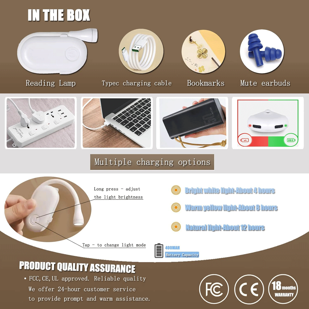 | اقلام همراه | چراغ مطالعه، کابل شارژ Type-C، دفترچه راهنما |