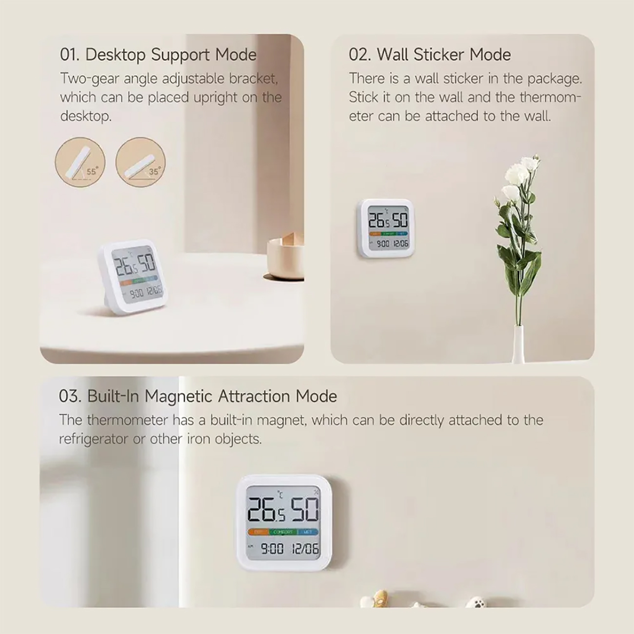 | مناسب برای چندین سناریو | مغناطیسی، دیواری و رومیزی |