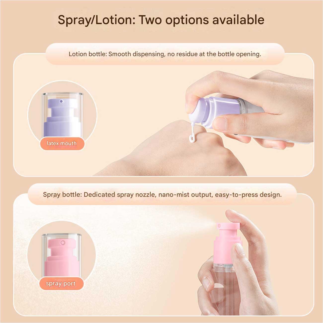 | قابل استفاده برای | لوسیون، شامپو، کرم، اسپری بدن، تونر، ضدعفونیکننده |