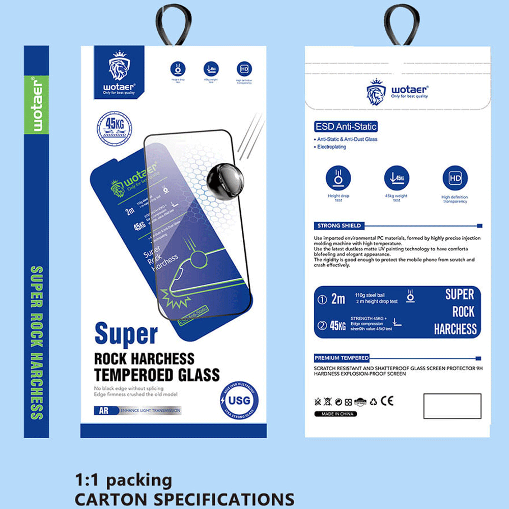 Wotaer Super 45KG Rock Harchess Temperoed GLASS Protector Apple iPhone 12 Pro Max