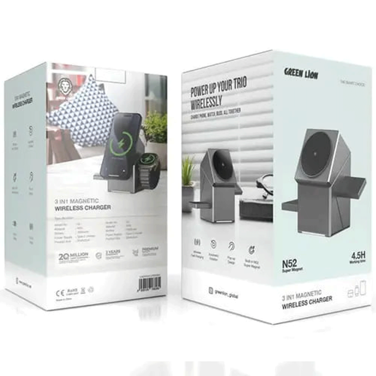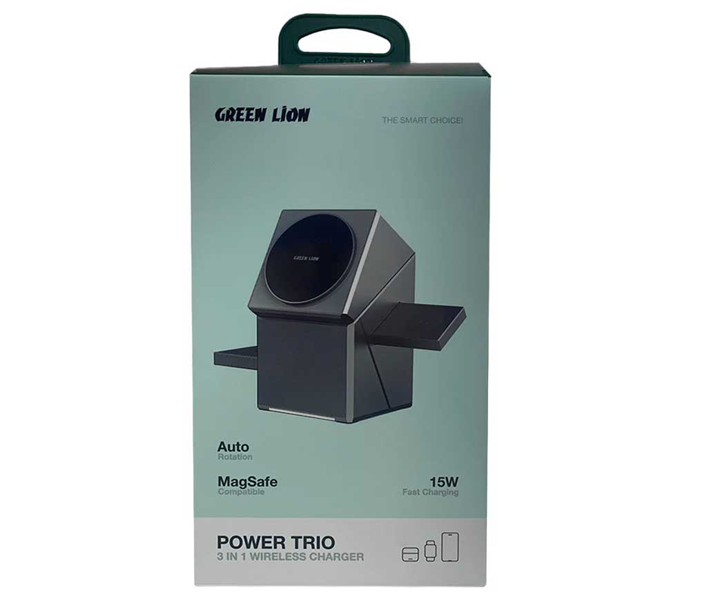 Green Lion GNPTRIOWCGY Power Trio 3 In 1 Wireless Charger