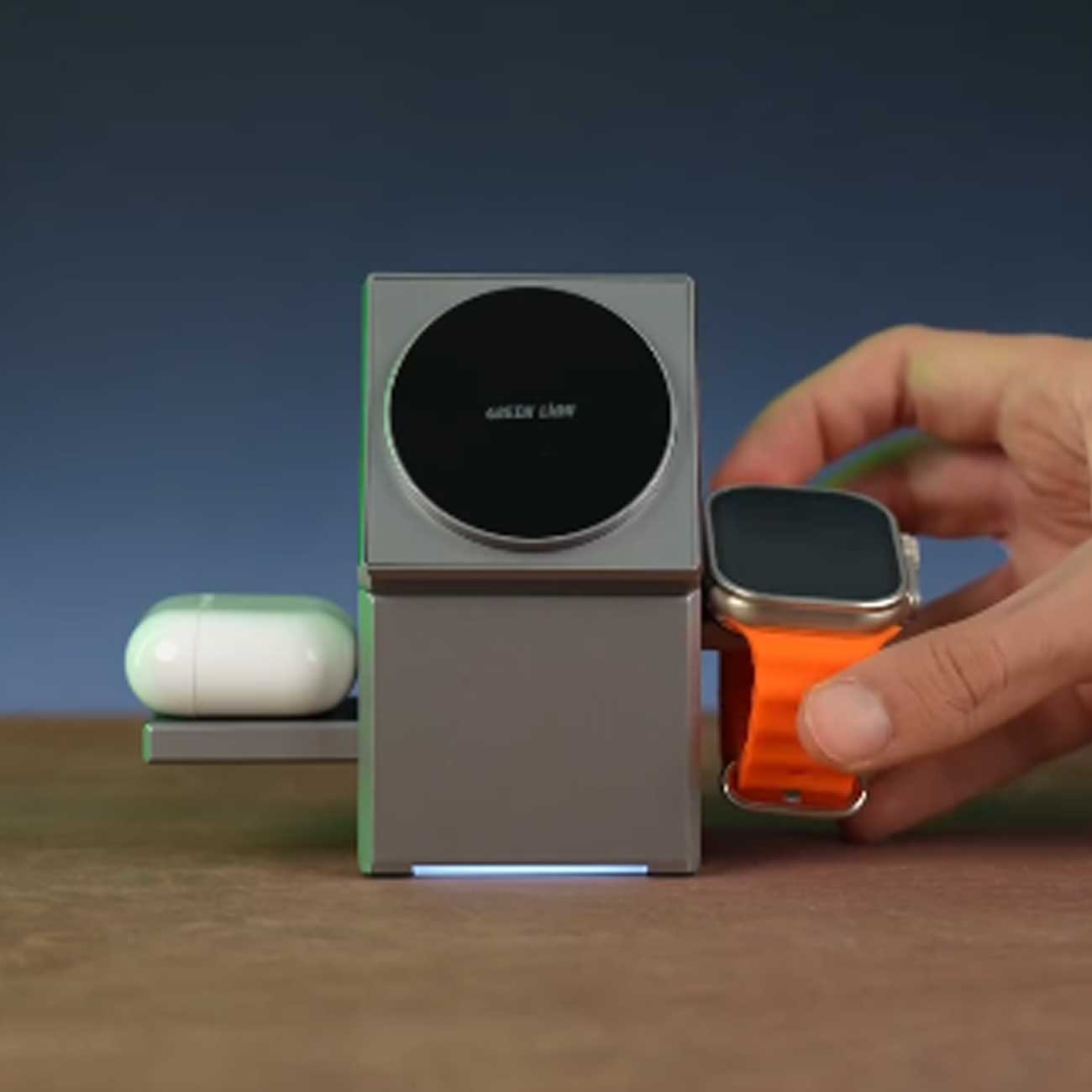 شارژر بی سیم رومیزی 15 وات سه کاره وگرین GNPTRIOWCGY