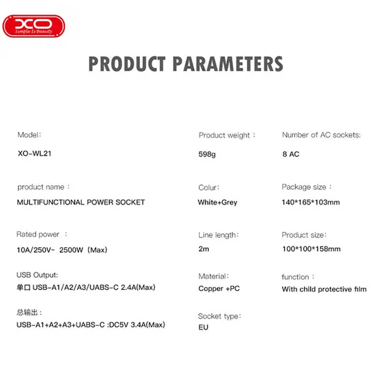 XO 2500W 6AC Power Socket with Independent Switch WL18