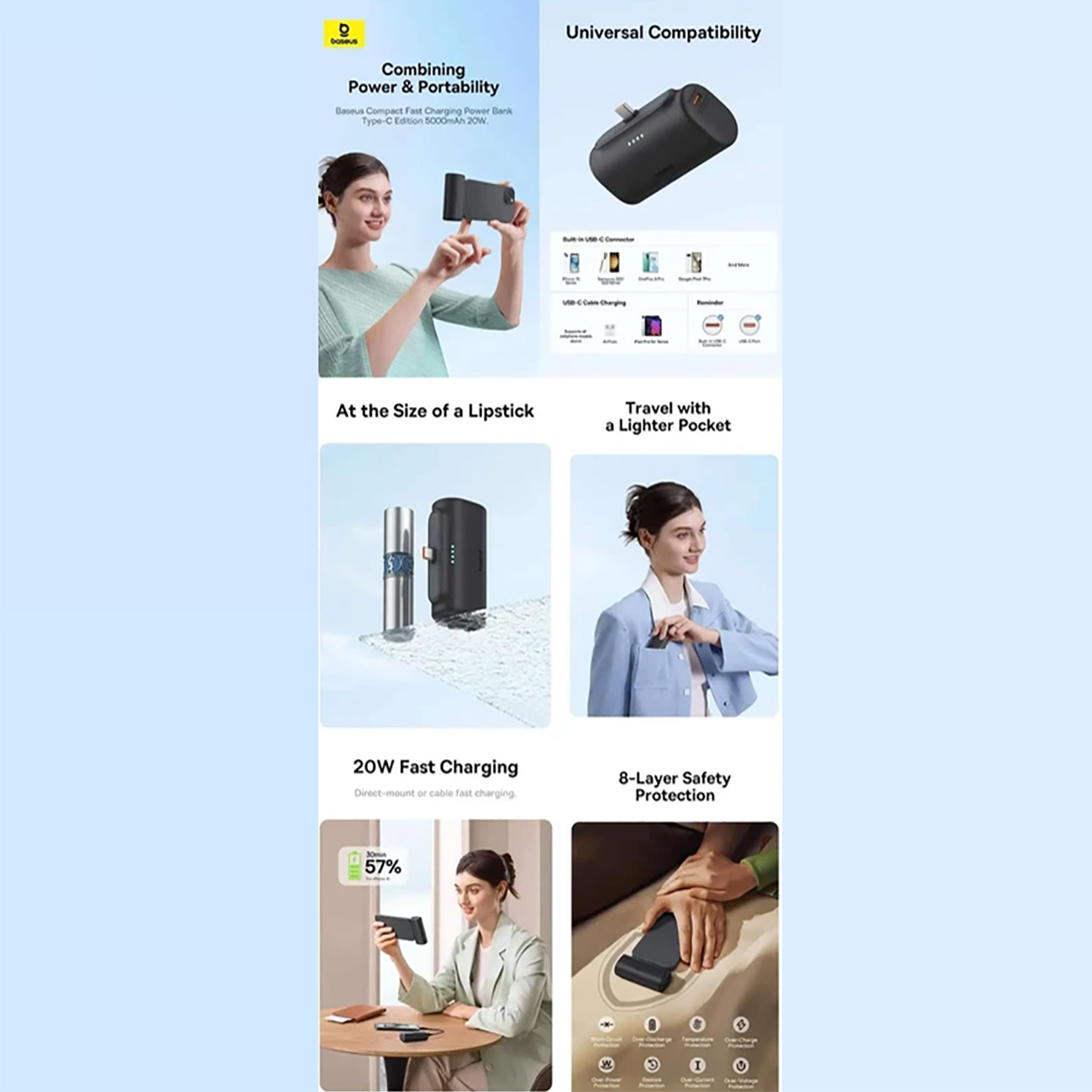 Baseus P10068306113 PPWC05T 5000mAh 20W Type-C Capsule Power Bank