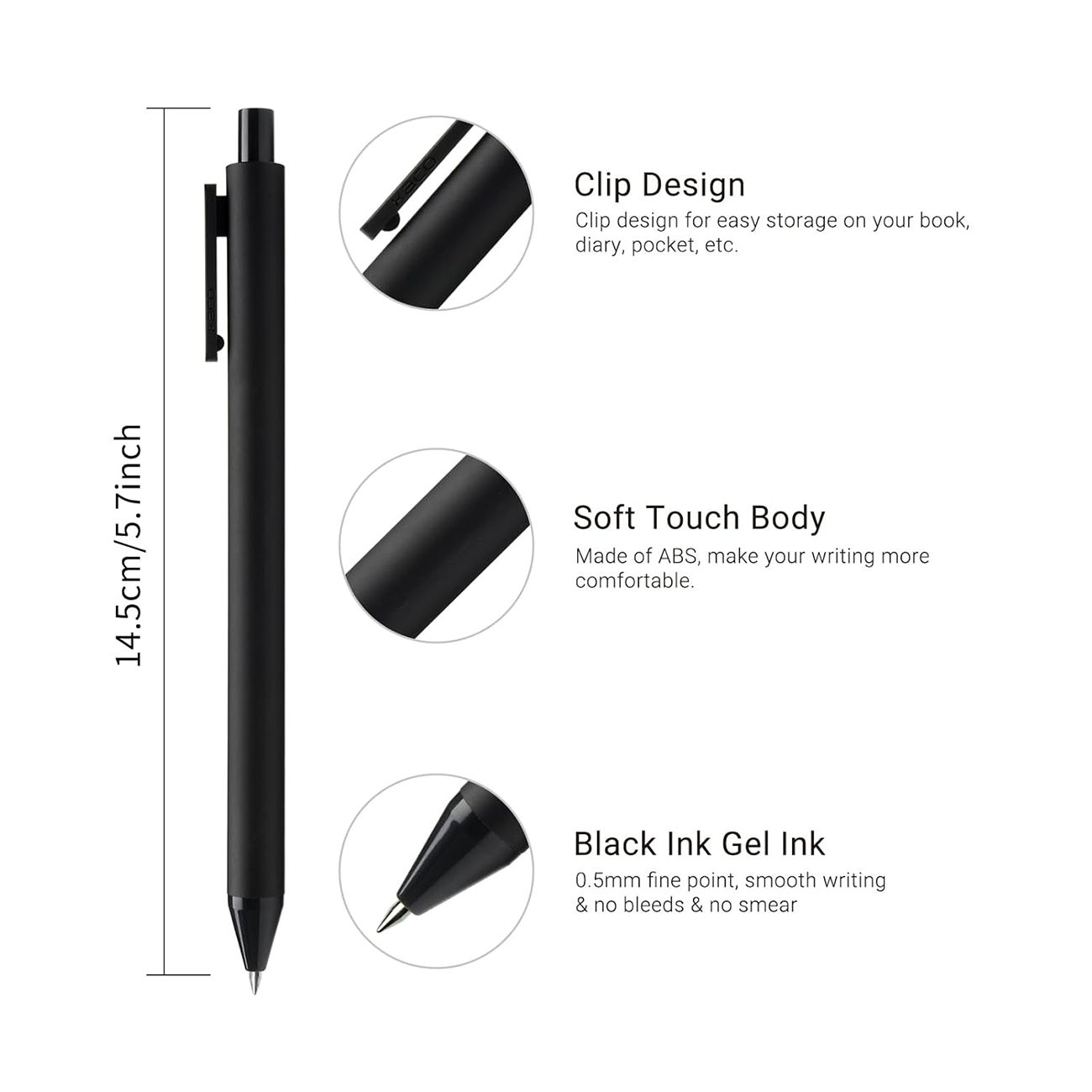 Kako K1015 PURE Gel Pen with 0.5mm Tip 10pcs Black and White
