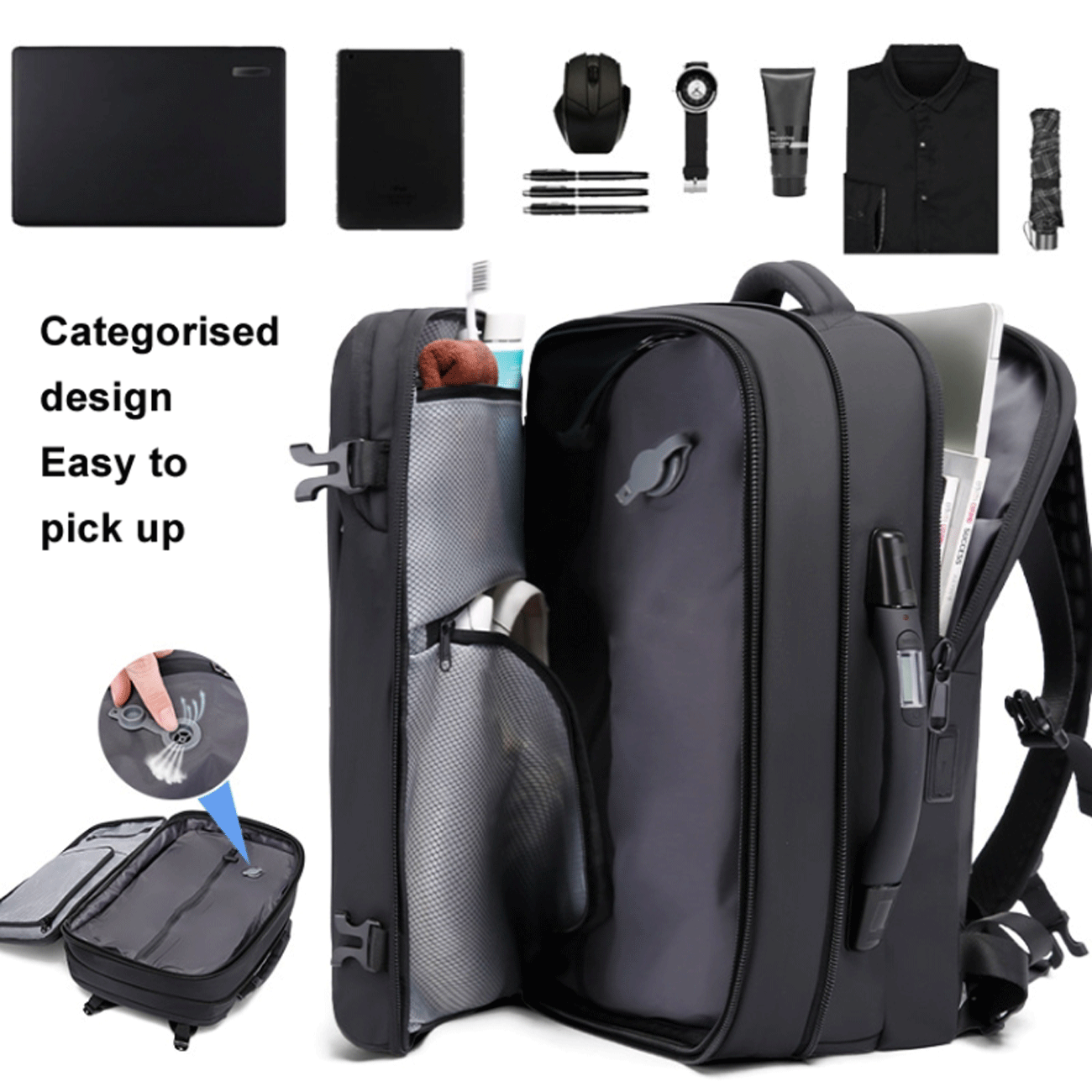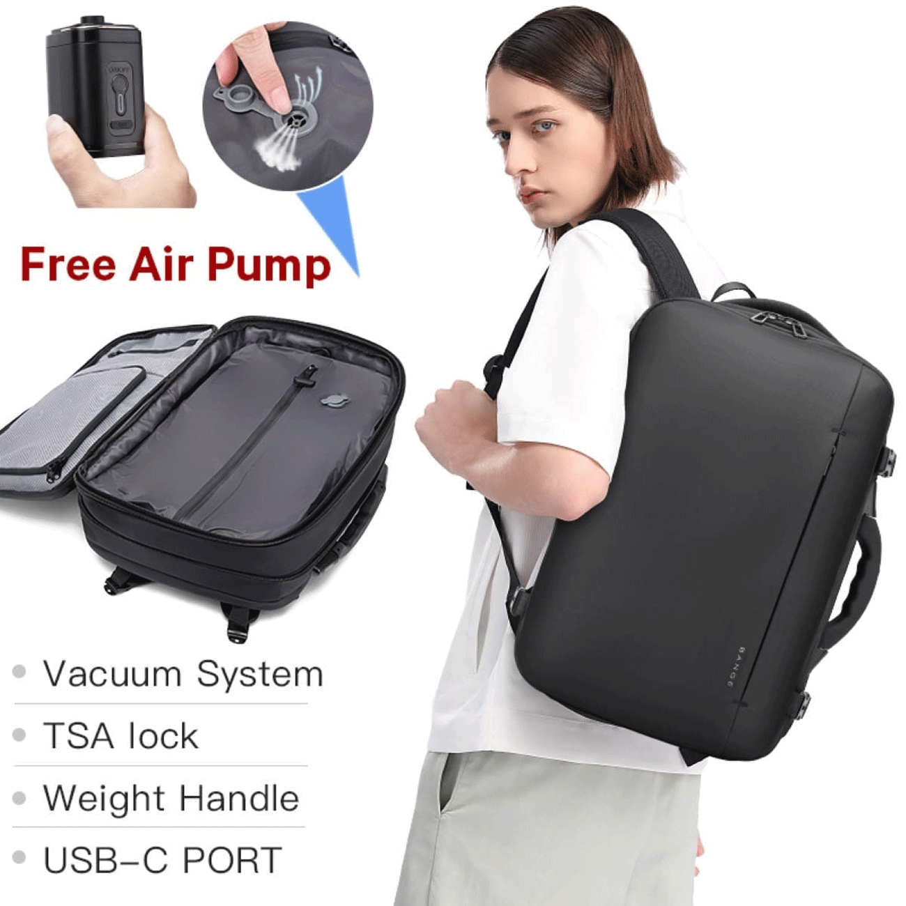 Bange 1909-8 Vacuum backpack Tsa Lock with scale 36L Laptop 17.3 inch