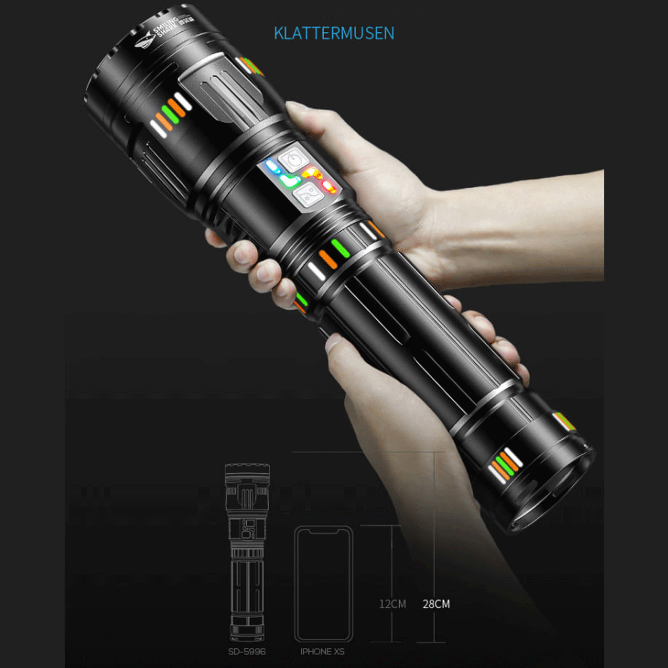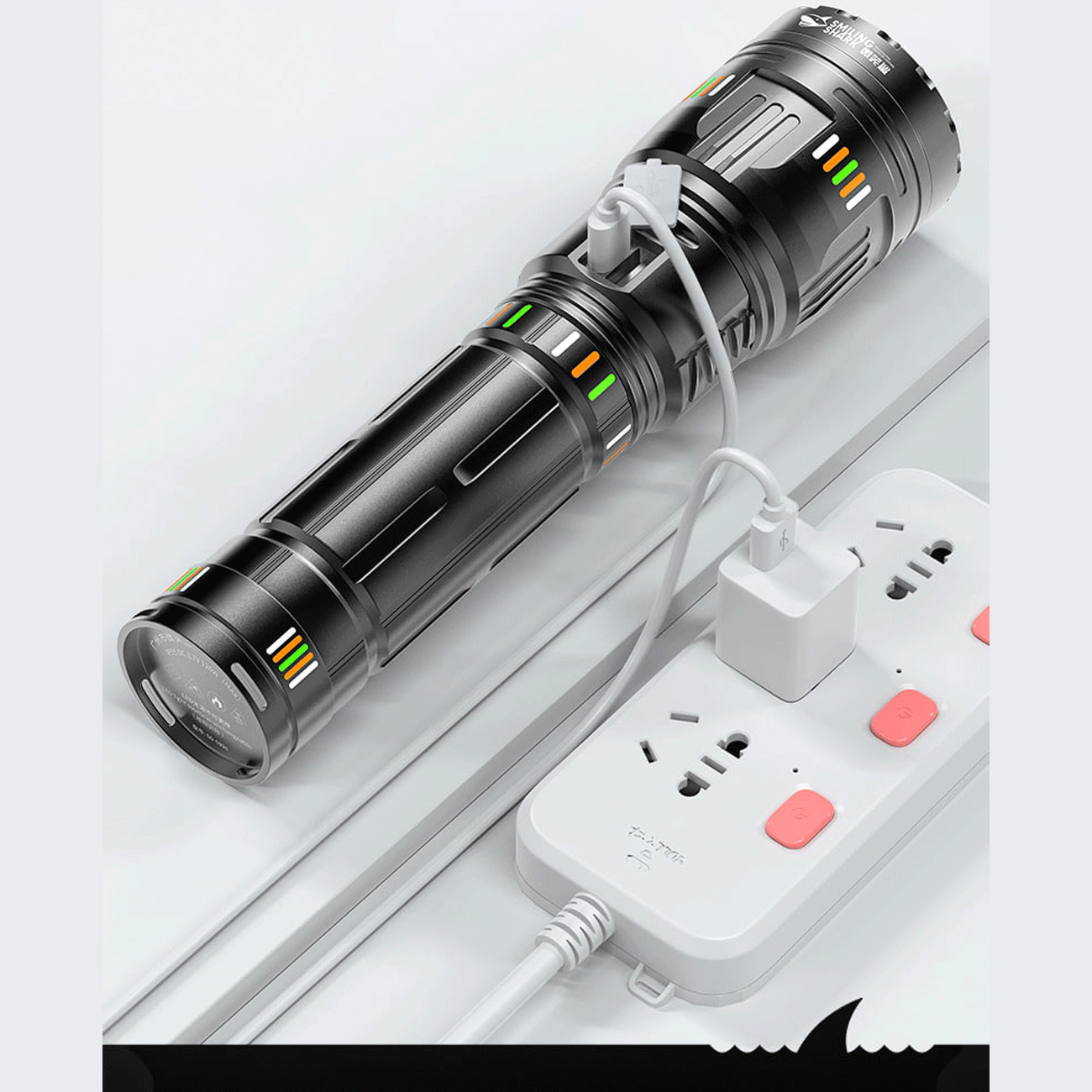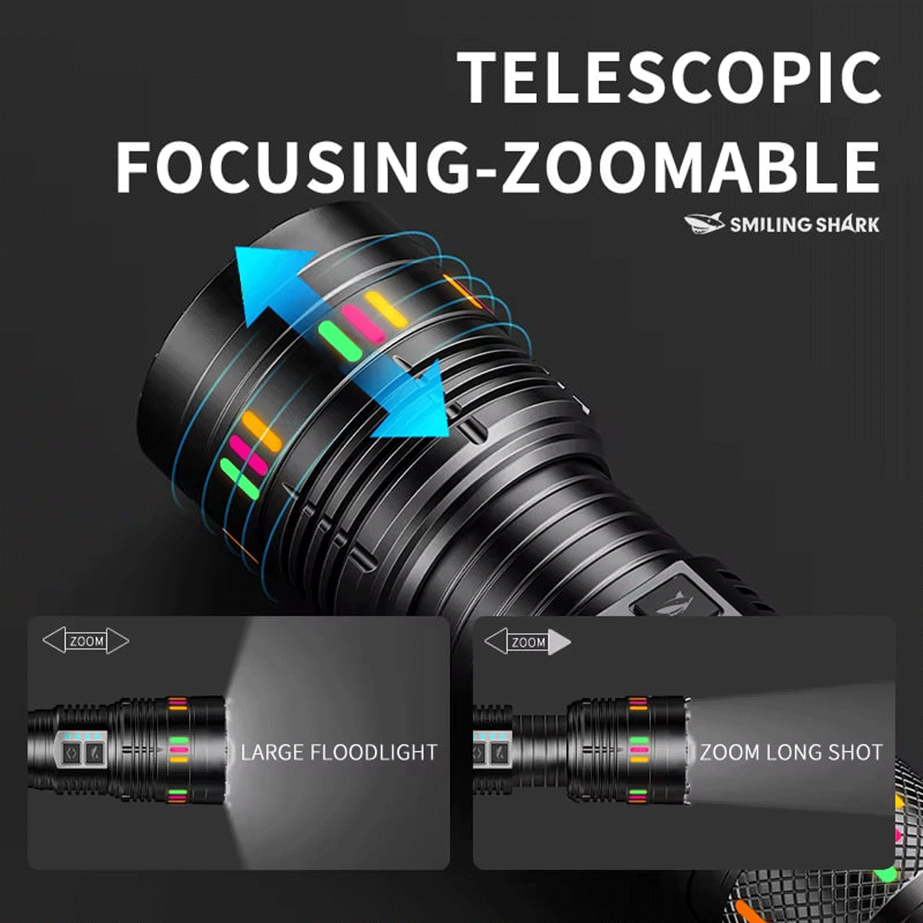 Smiling Shark SD-5996 LED Flashlight, Zoomable Torch with Power Bank